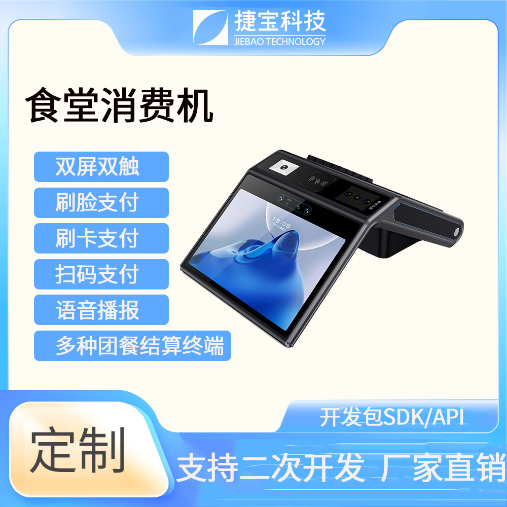 捷寶科技是國內(nèi)最早推出基于Android系統(tǒng)智能硬件的廠家之一。產(chǎn)品形態(tài)涵蓋手持、臺式、立式、掛式、柜式、單屏、雙屏;功能上圍繞NFC識別、條碼識別、生物識別,AI識別等技術大類,開發(fā)出可識別CPU卡、M1卡、射頻卡、二代身份證、社保卡、一維條碼掃描、掃碼支付、指紋識別、人臉識別、掌靜脈識別、虹膜識別、AI菜品識別、智能語音識別等功能的各類產(chǎn)品。